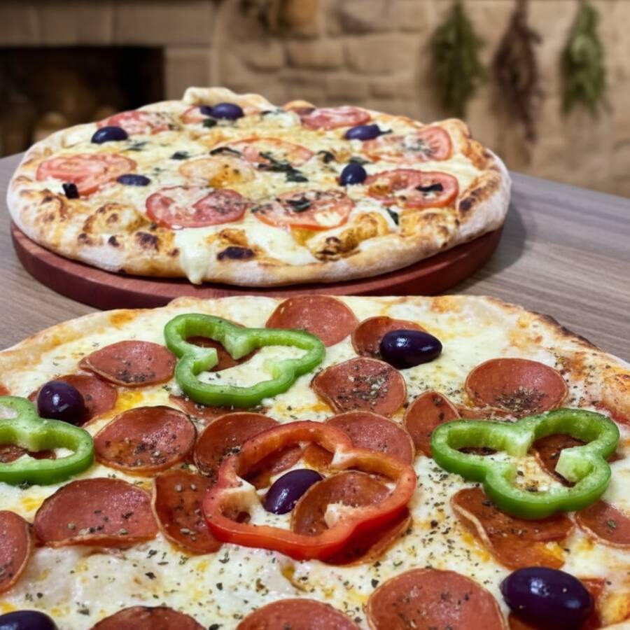 Saboreie duas pizzas por um preço especial hoje! Escolha entre uma variedade de sabores e aproveite o dobro do prazer. Peça já!