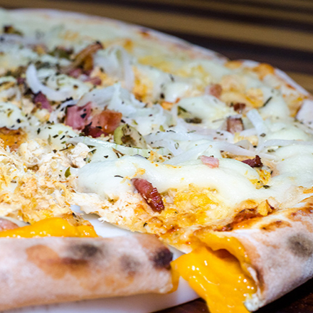 Pizza Grande: Frango C Catupiry E Bacon + Borda Cheddar Grátis!