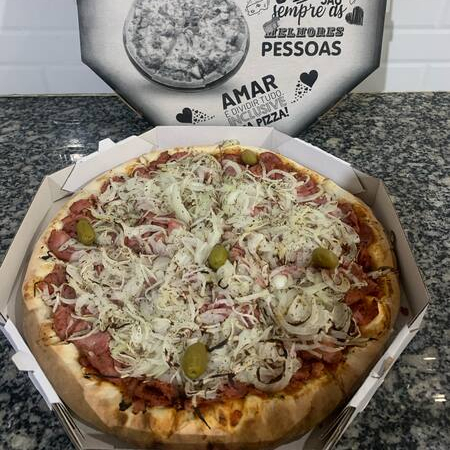 A pizza grande de 8 pedaços é uma delícia irresistível pizza crocante com molho de tomate fresco e uma combinação generosa de queijos derretidos e ingredientes selecionados como calabresa acebolada , e Mussarela com manjericão fresco.