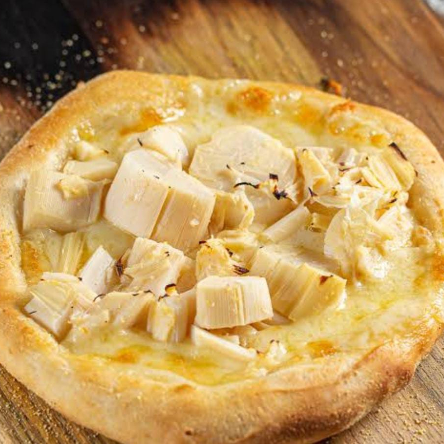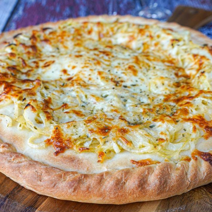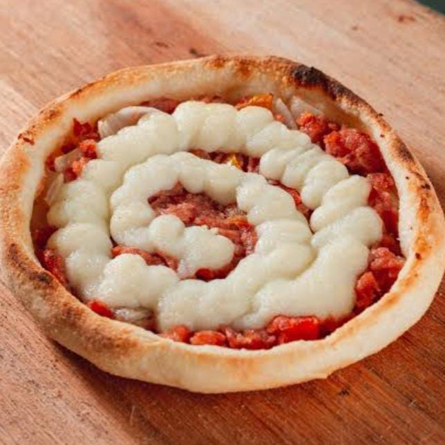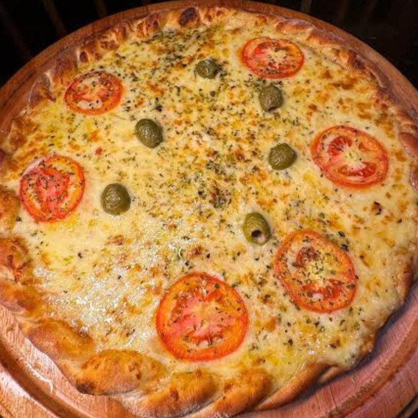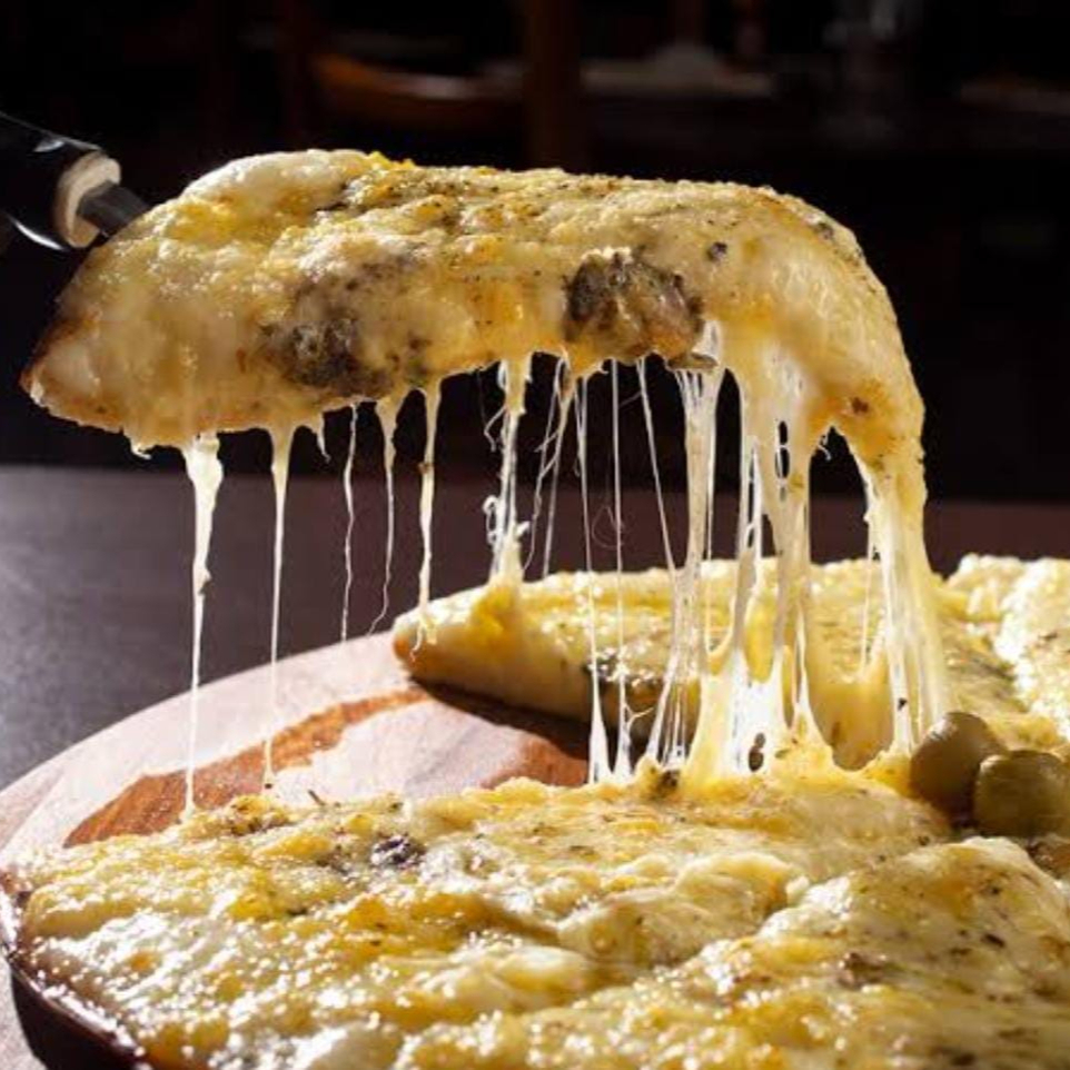 Mussarela, catupiry, provolone e parmesão.