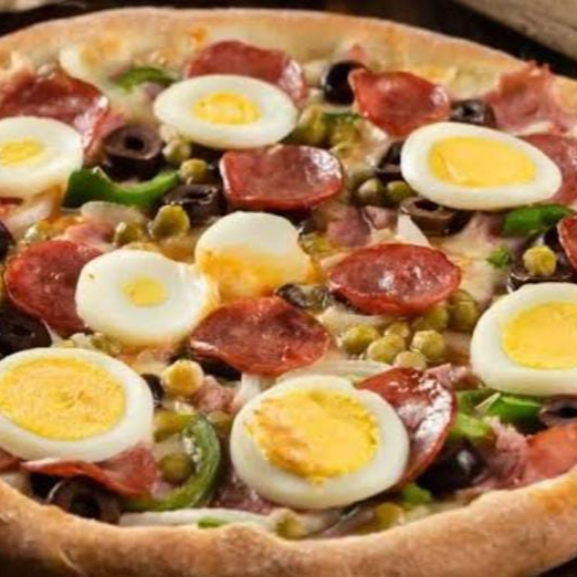 Presunto, calabresa, ovo e mussarela.