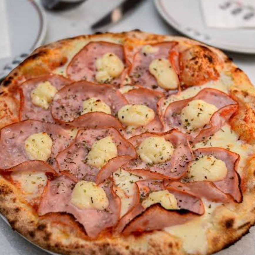 Lombo canadense, champignon, mussarela e bacon.