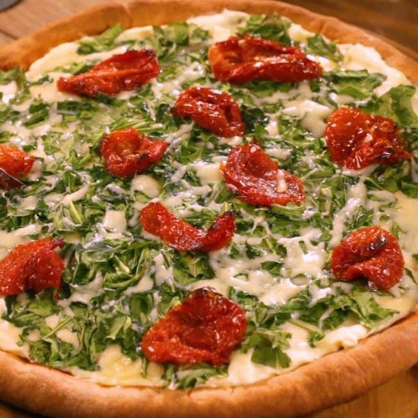 Mussarela de bufala, tomate seco e rúcula.