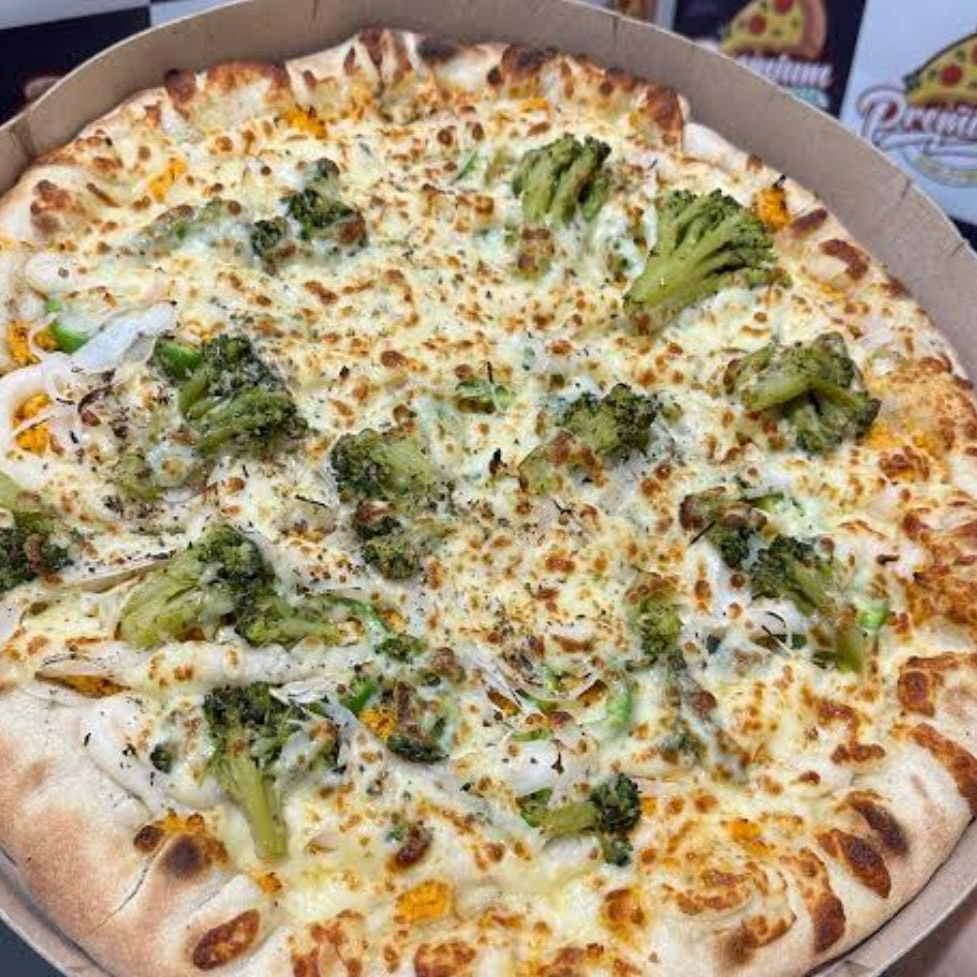 Brocolis, mussarela, cebola e parmesão.