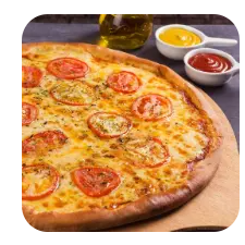 PIZZA DE 8 FATIAS MASSA TARDICIONAL, MOLHO ARTESANAL DE TOMATES FRESCOS, ,MUSSARELA, RODELAS DE TOMATES
