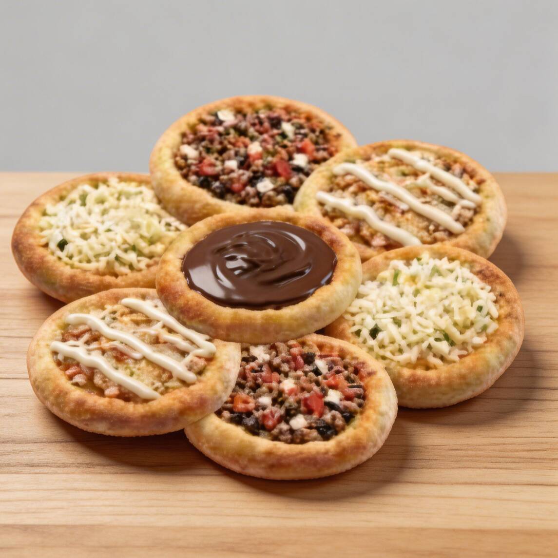 Uma diversidade de deliciosas esfihas doces para voce escolher o da sua preferencia.