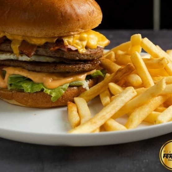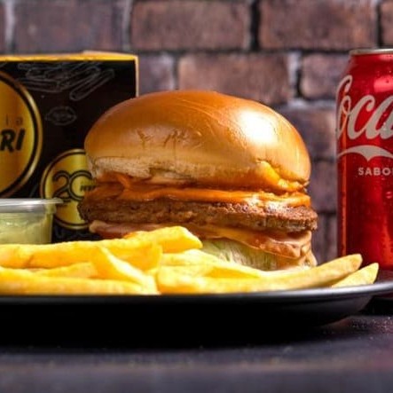 1 Lanche Matador (hambúrguer, cebola frita alface, queijo provolone, molho barbecue e maionese) + batata + refrigerante lata