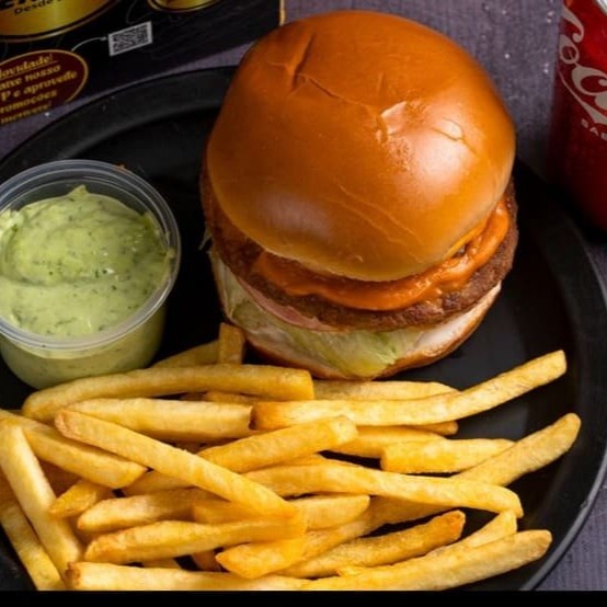 1 Lanche Vip (hambúrguer, bacon, ovo, queijo prato, tomate, alface e maionese) + batata + refrigerante lata