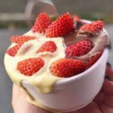 Morango, Banana, Manga e Uvas verde com uma deliciosa cobertura de Leite Condensado.