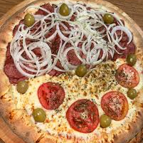 Clássica e cheia de sabor: pizza de calabresa com cebola, bem temperada e irresistível em cada fatia 🍕🧅