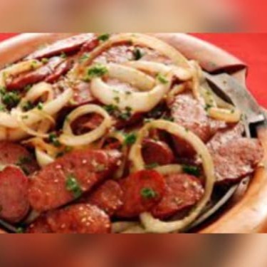 Deliciosa porção de calabresa, cuidadosamente fatiada em rodelas e grelhada à perfeição, realçando seu sabor marcante e defumado. Complementada com cebolas levemente douradas, que adicionam um toque adocicado e crocante ao prato. Ideal como aperitivo, essa porção é a junção harmoniosa de sabores que aguçam o paladar. Desfrute dessa experiência gastronômica única e irresistível, que só nossa cozinha oferece. Perfeita para compartilhar com amigos e família.