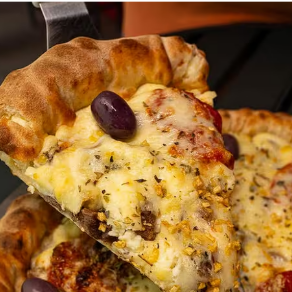 Massa artesanal no ponto, molho de tomate especial, muçarela derretida, presunto suculento, ervilhas frescas, ovos cremosos, cebola caramelizada, azeitonas selecionadas e orégano.