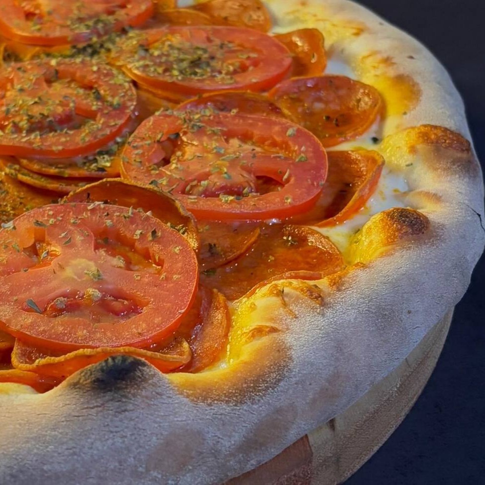 MUSSARELA,RODELAS DE TOMATE E SALAME