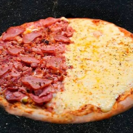 Pizza Grande: 1 2 Calabresa+ 1 2 Mussarela