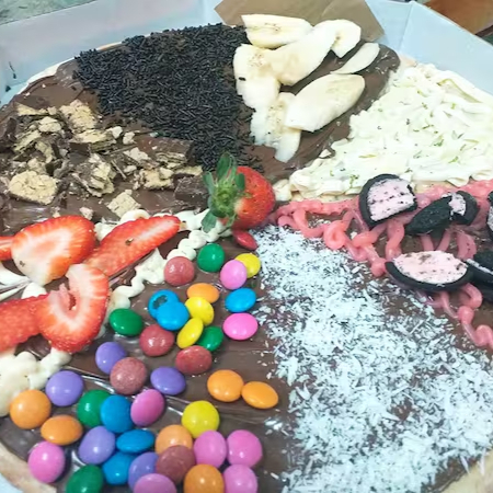 Escolha uma sabor de pizza salgada e uma pizza brotinho doce. a pizza doce que as crianças amam, feitas com um delicioso chocolate e muitas opções de complemento. 9 opções de sabores de pizza salgadas para sua escolha.