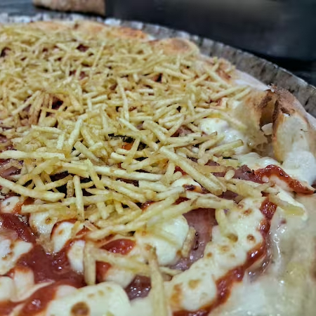 E ai, pode colocar ketchup na pizza? fizemos uma especial, com ketchup e batata palha! as crianças vão amar! aquele sabor que faz lembrar de nossa infância, tem coisa melhor? (mussarela, calabresa, Catupiry, ketchup e batata palha).