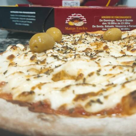 A 'Favorita' é a estrela da nossa 'Promoção Matias'. Com sabores irresistíveis, você tem a liberdade de escolher entre três opções: a tradicional pizza de calabresa, repleta de fatias suculentas e temperadas; a clássica pizza de mussarela, coberta com um queijo derretido e sedutor; ou a harmoniosa combinação de meia calabresa e meia mussarela.
