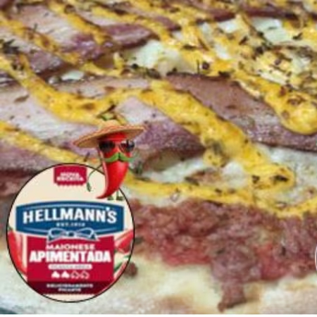 Calabresa moída, ovos, cebola, molho de pimenta, mussarela, bacon em fatias e maionese Hellmann s apimentada. Serve 4 pessoas.