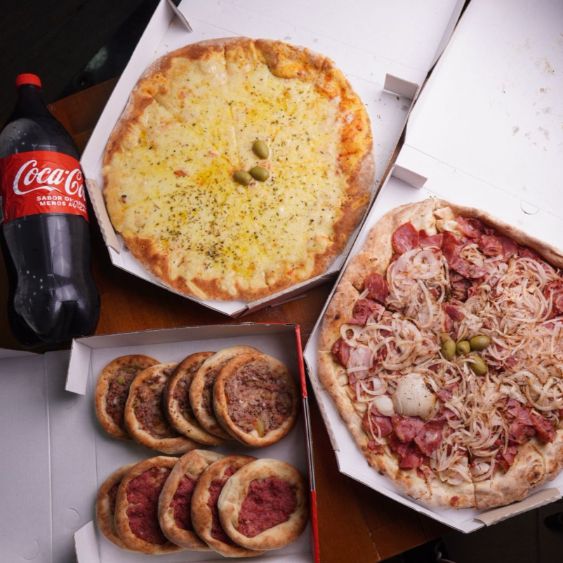 1 PIZZA MEIA/MEIA( CALABRESA E MUSSARELA ) 15 ESFIHAS DE CARNE E 1 COCA COLA 2 LITROS