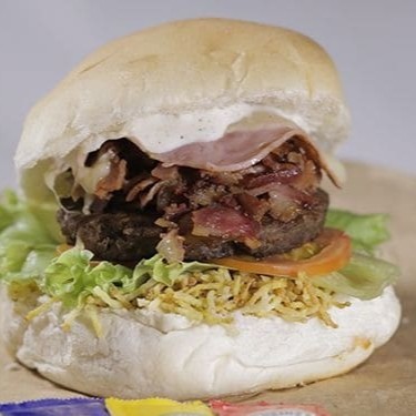 Pão australiano, frango artesanal temperado, alface americano, tomate, queijo mussarela, bacon, molho ranch.