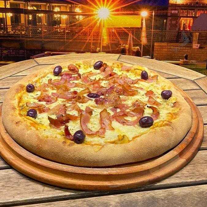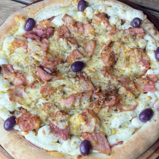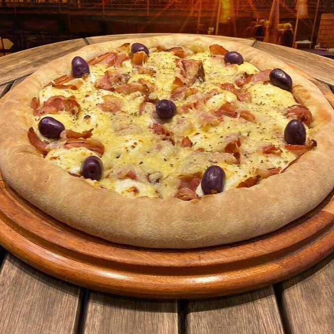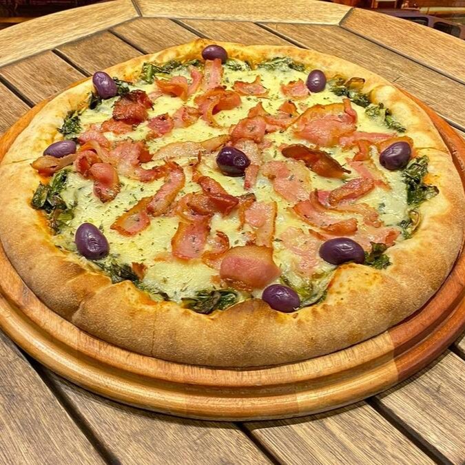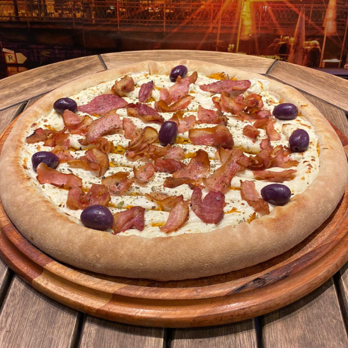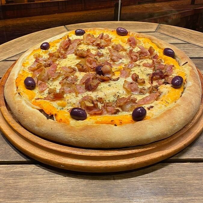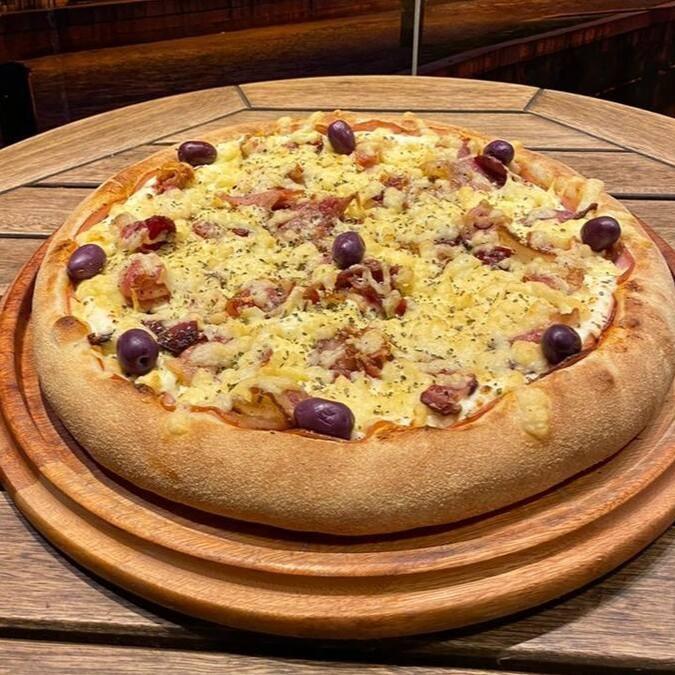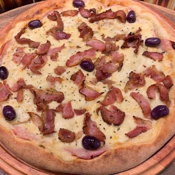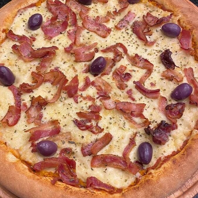 Calabresa, mussarela, ovo, bacon, alface e tomate