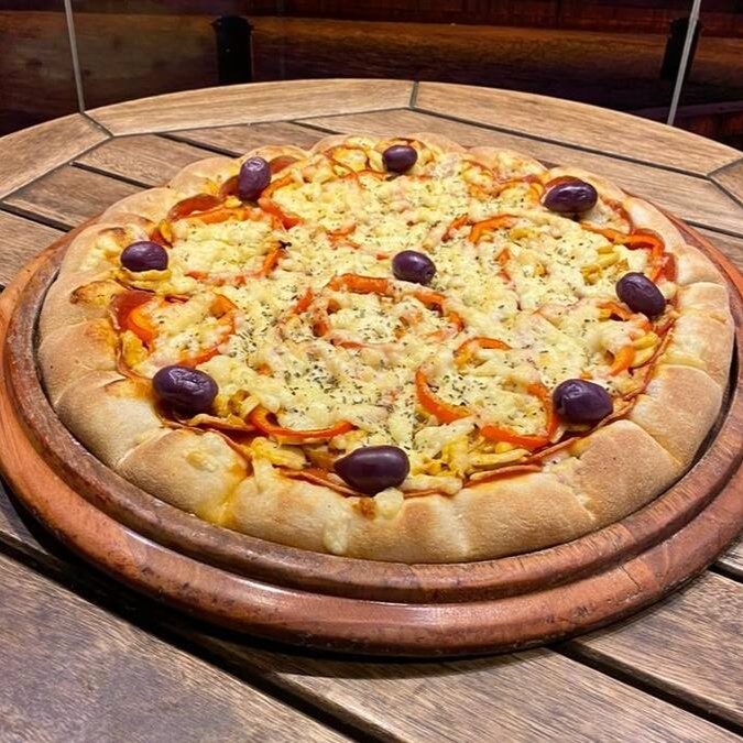 Pepperoni, champignon, pimentão, parmessão e mussarela