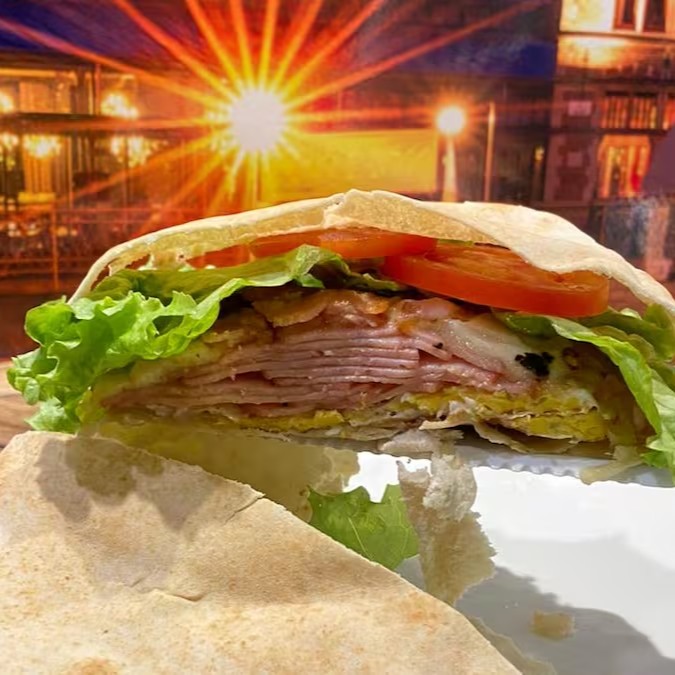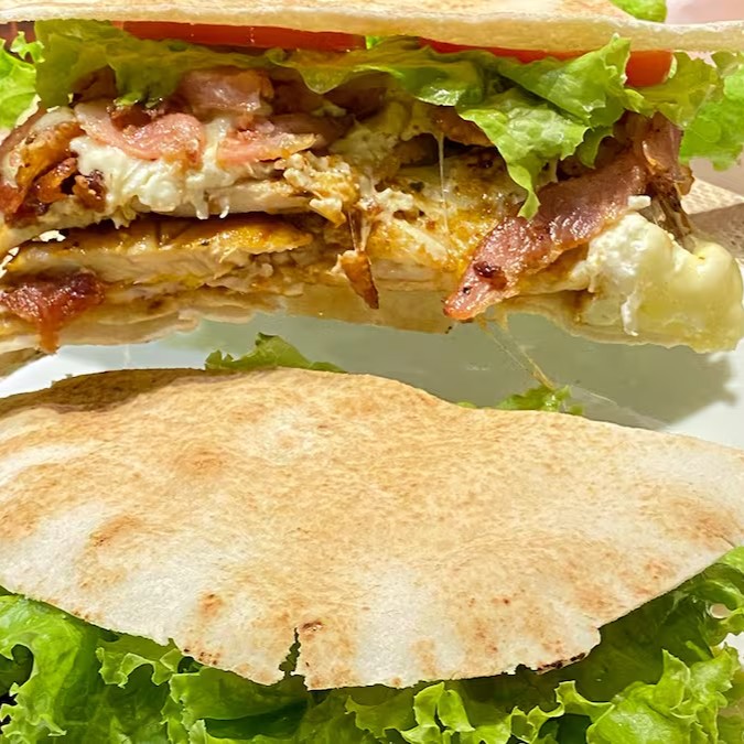 Peito de peru, mussarela, ovo, bacon, alface e tomate