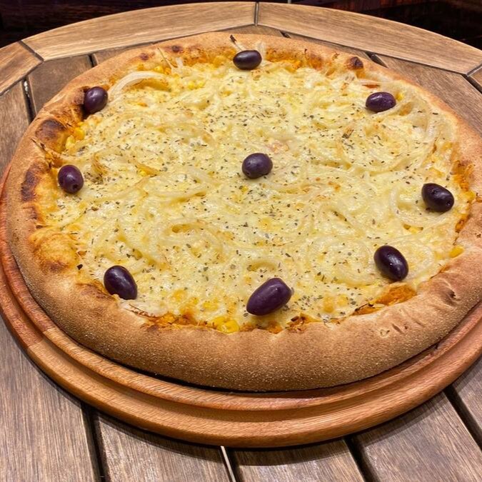 Frango desfiado, milho, cebola e mussarela.