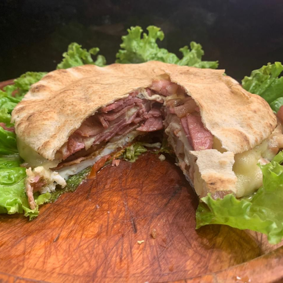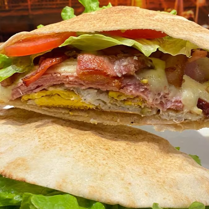 Presunto, mussarela, ovo, bacon, alface e tomate