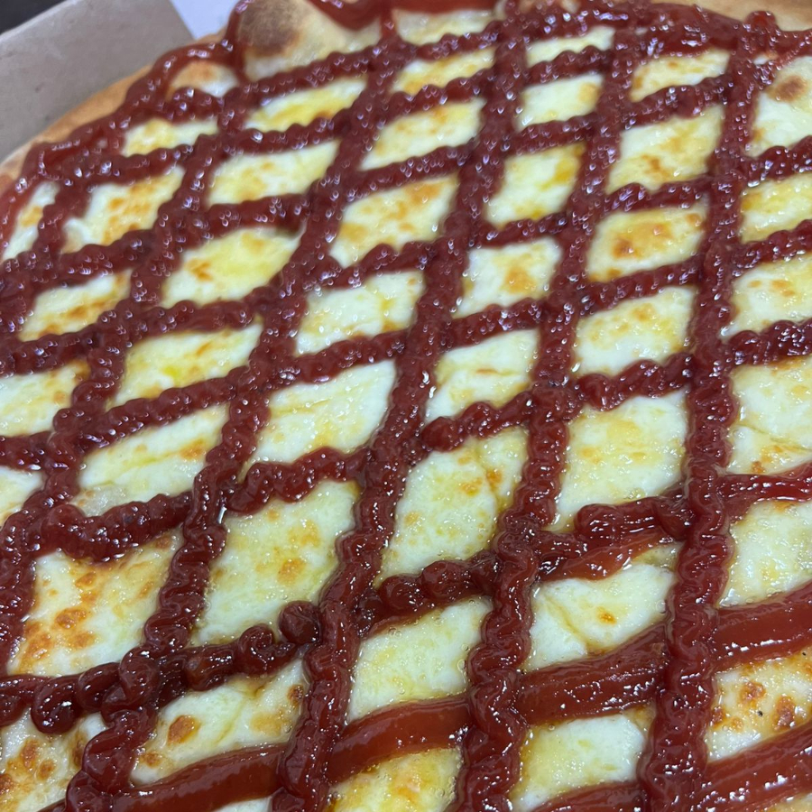 calabresa,catupiry,ovo,mussarela,bacon,tomate,oregano e azeitona, molho de tomate