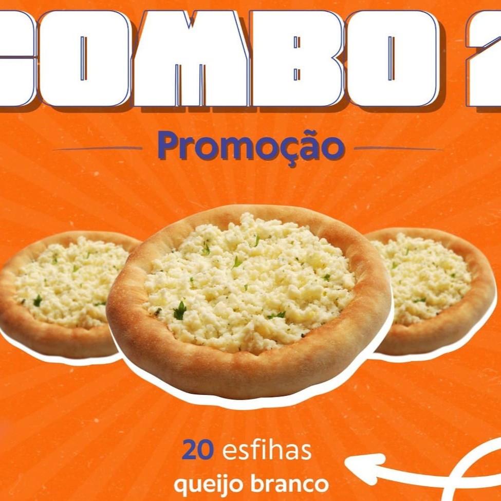 20 esfihas de carne + 10 esfihas de queijo branco + 1 dolly guarana 2 litros