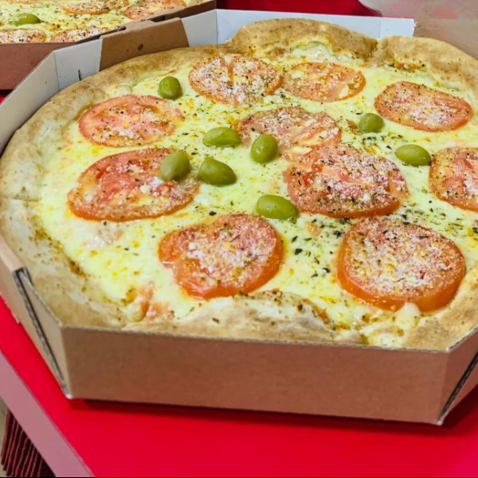 MUSSARELA, TOMATE , PARMESAO E AZEITONAS