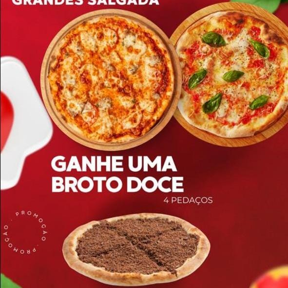 Uma promoção imperdível!! Na compra de duas pizzas salgadas, ganhe uma broto doce de brigadeiro. Aproveite!
