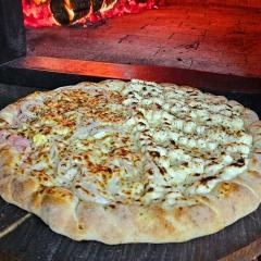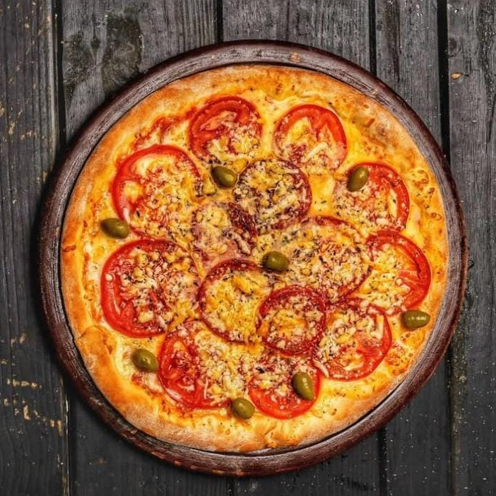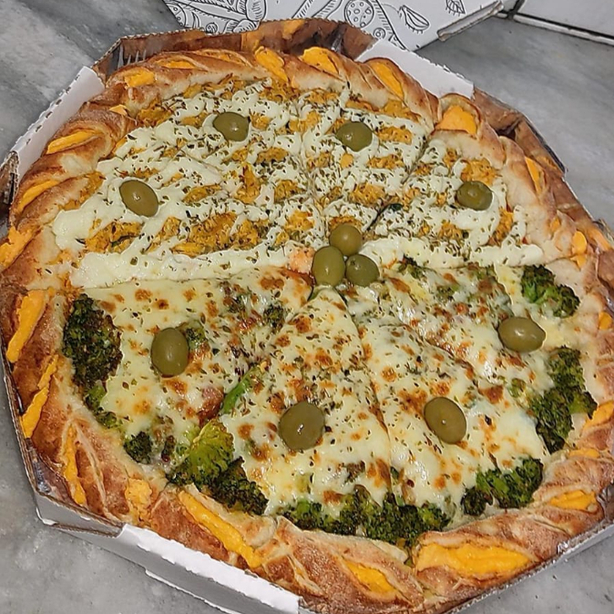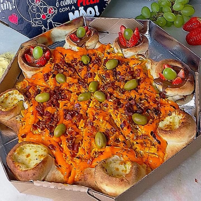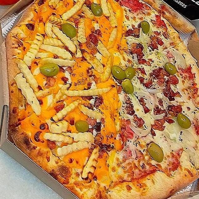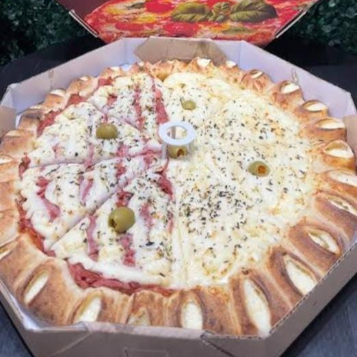 Calabresa, tomate, ovo, palmito, ervilha e mussarela