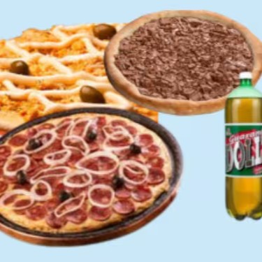 1 Calabresa + 1 Mussarela + 1 Broto Brigadeiro + 1 Dolly 2l