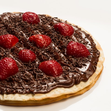 Delicioso chocolate Nestlé com morangos selecionados e granulados sob uma massa fininha e crocante. (Aprox 24cm)