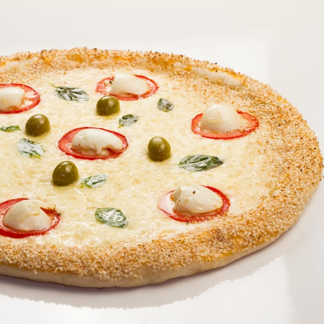 Mussarela de búfala, lascas de queijo boconccino ao topo do tomate ao forno , folhas de manjericão fresco, borda de Catupiry da casa com gergelim. Os sabores Suprema Light e Piacenza já vêm com borda de catupiry e gergelim gratuitamente, não sendo possível adicionar mais uma borda no final