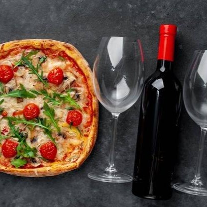 Pizza grande (8 fatias) de mussarela com vinho suave: uma combinação clássica e aconchegante.