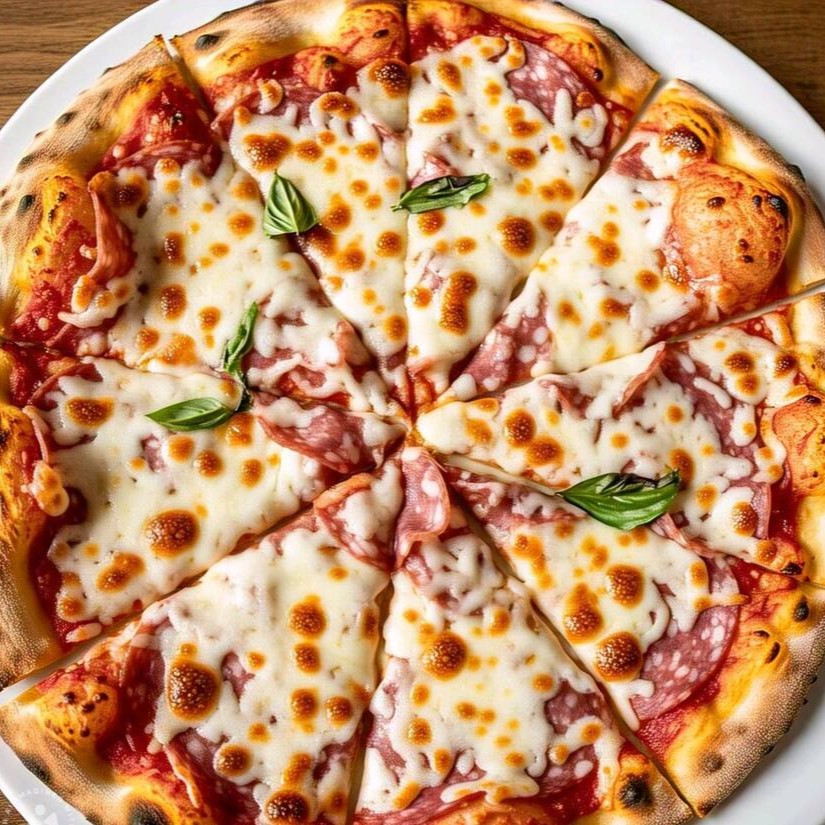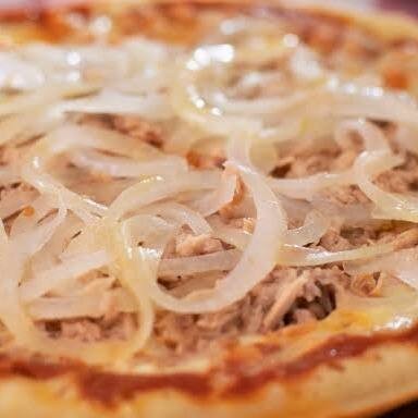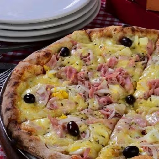 Grande 8 fatias saborosa de apresuntado, ovos, cebola e mussarela.