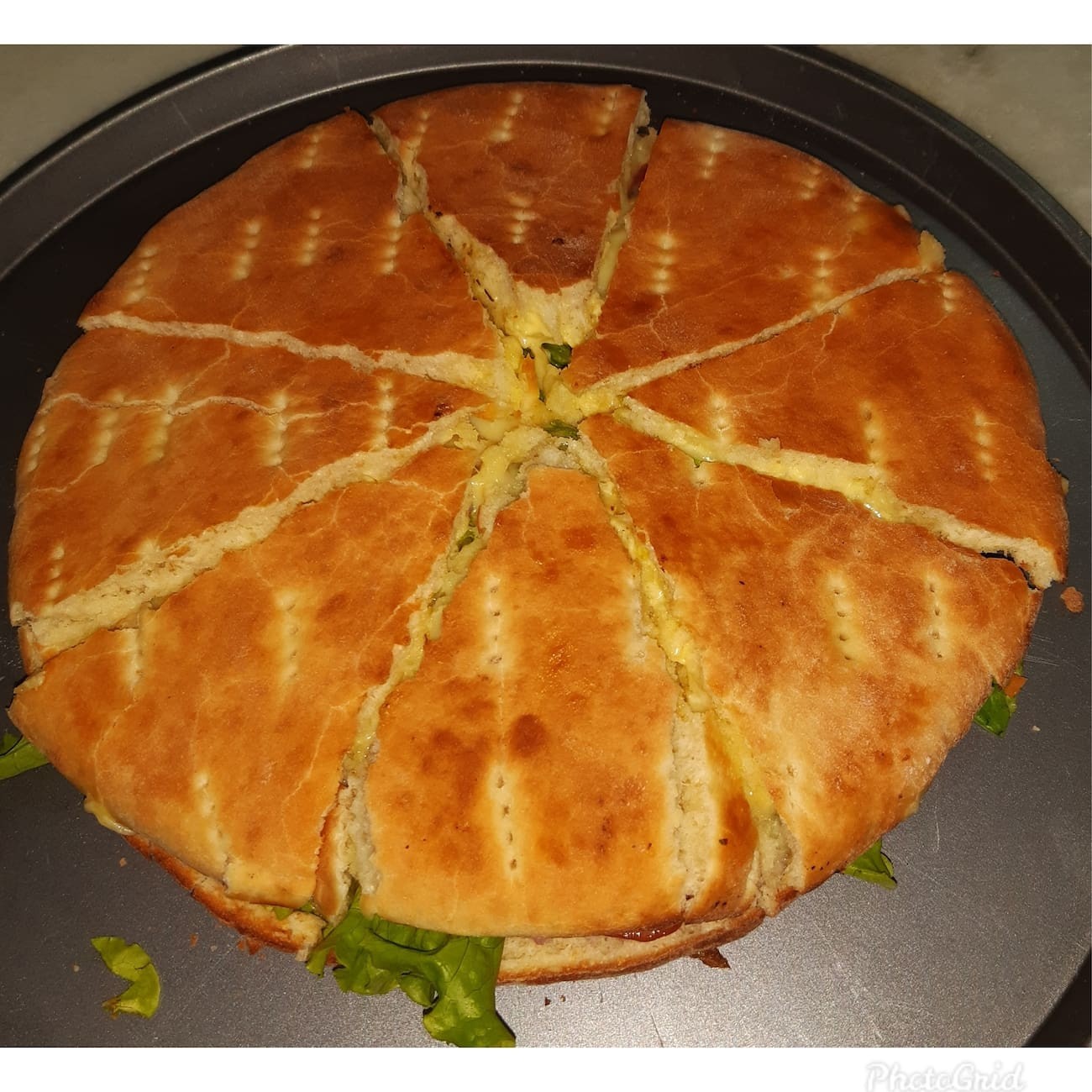 Maionese, presunto, atum, cebola, mussarela, alface e tomate