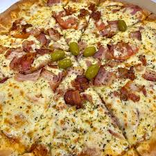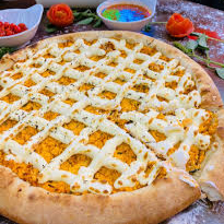 (Pizza grande 8 pedaços) Massa artesanal , molho de tomate fresco, frango com leve tempero da casa coberto com requeijão