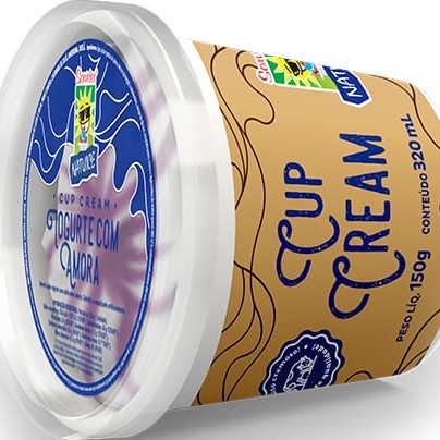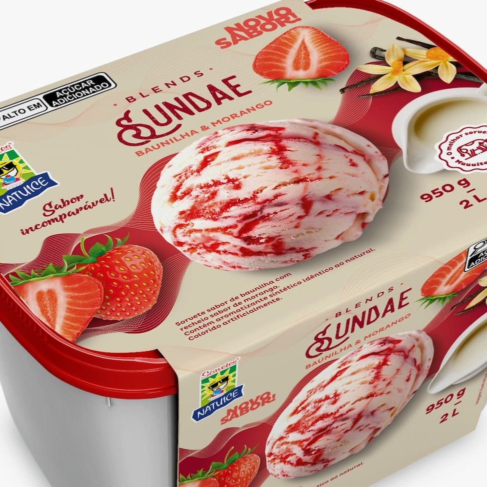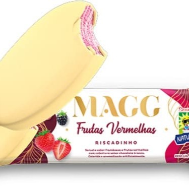 Sorvete de massa sabor iogurte c/ calda de frutas vermelhas.