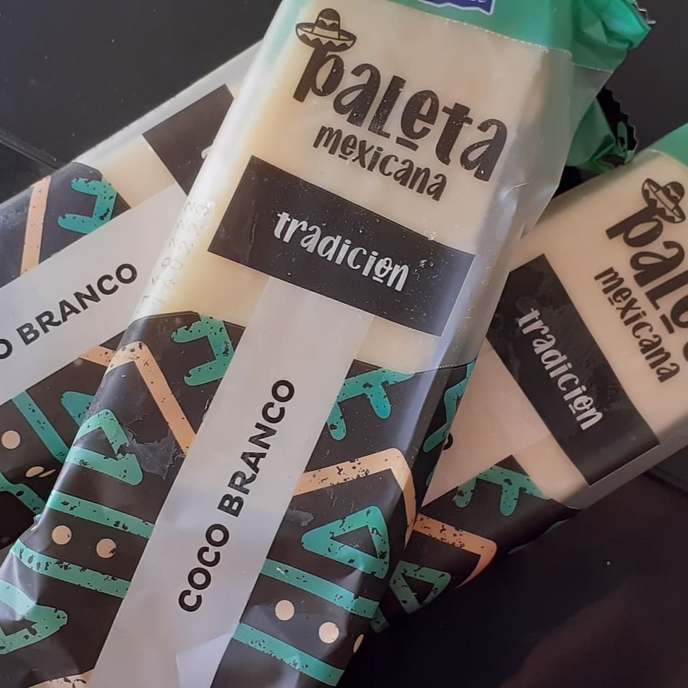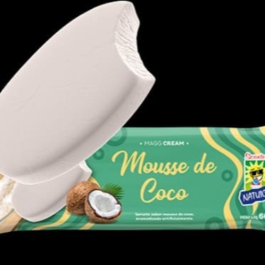 Sorvete de massa sabor coco trufado de chocolate e lascas de coco.