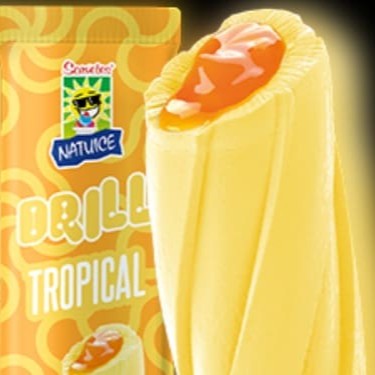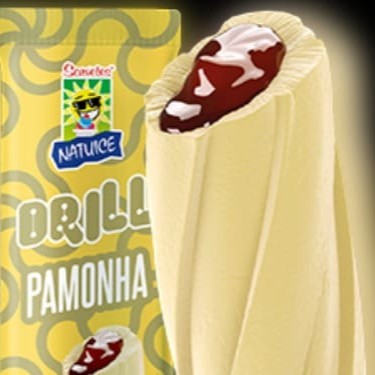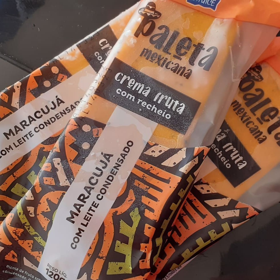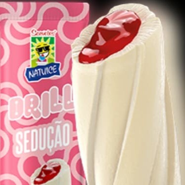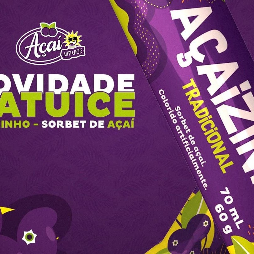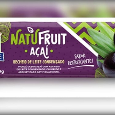 Picole sabor açaí a base de água c/recheio de leite condensado.