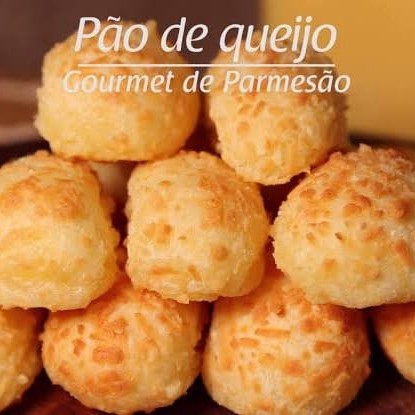 Pão de queijo coberto com parmesão. Preparo > Assar no forno ou na Air Fryer á 180 por 13 minutos.