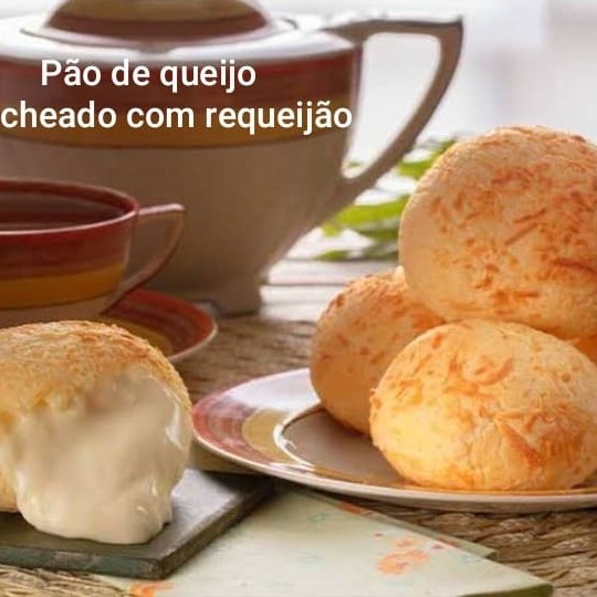 Pão de queijo coberto com parmesão e recheado com requeijão. Preparo > Assar no forno ou na Air Fryer á 180 por 13 minutos.