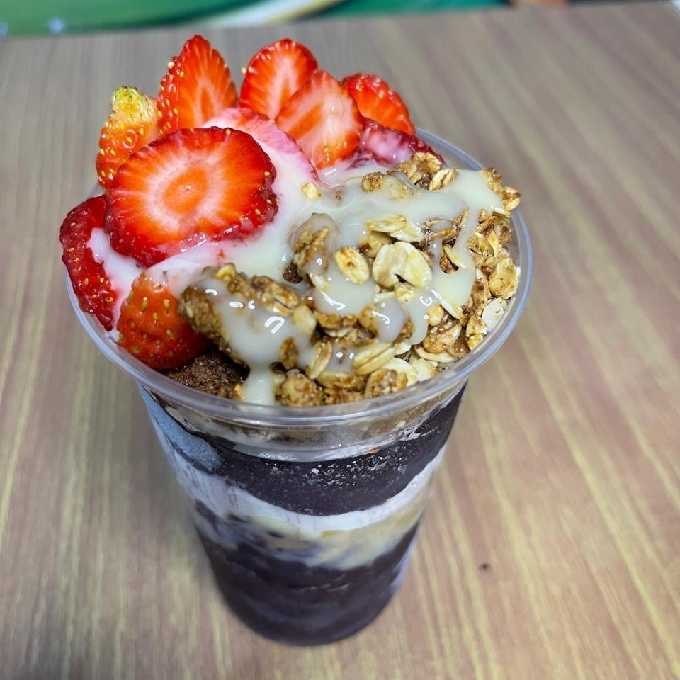 Copo bem recheado já incluso frutas e acompanhamentos a sua escolha.