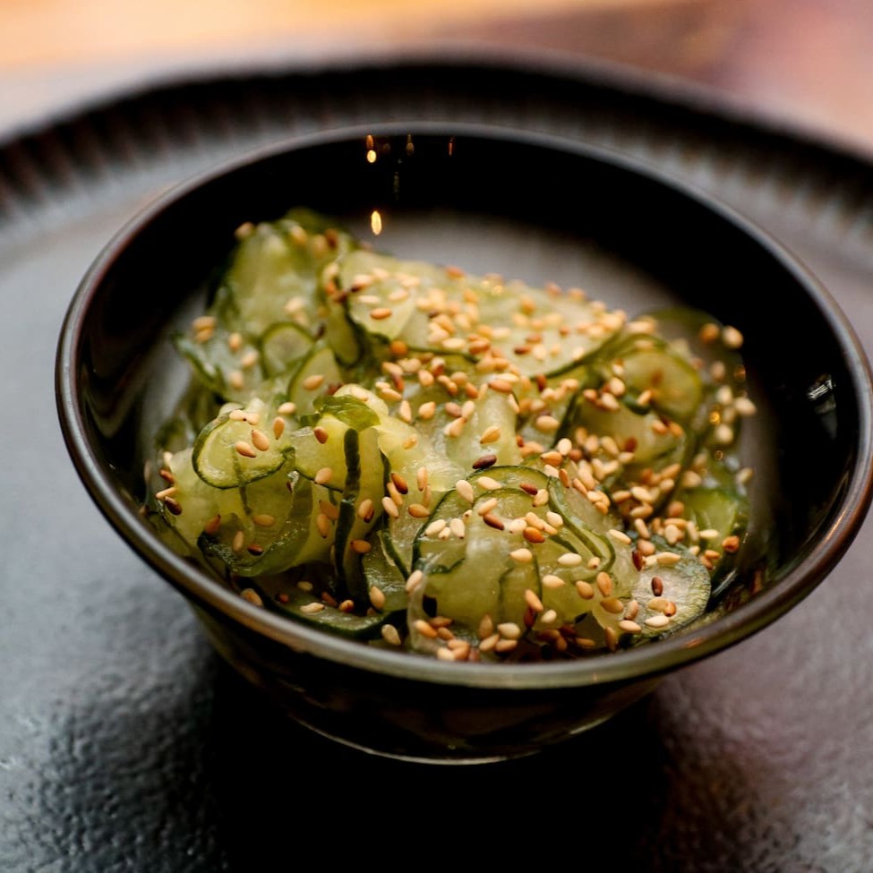 Salada De Pepino Japonês Fatiado C/ Cenoua Ralada E Gergelim, Marinados Em Molho Cítrico Oriental.
