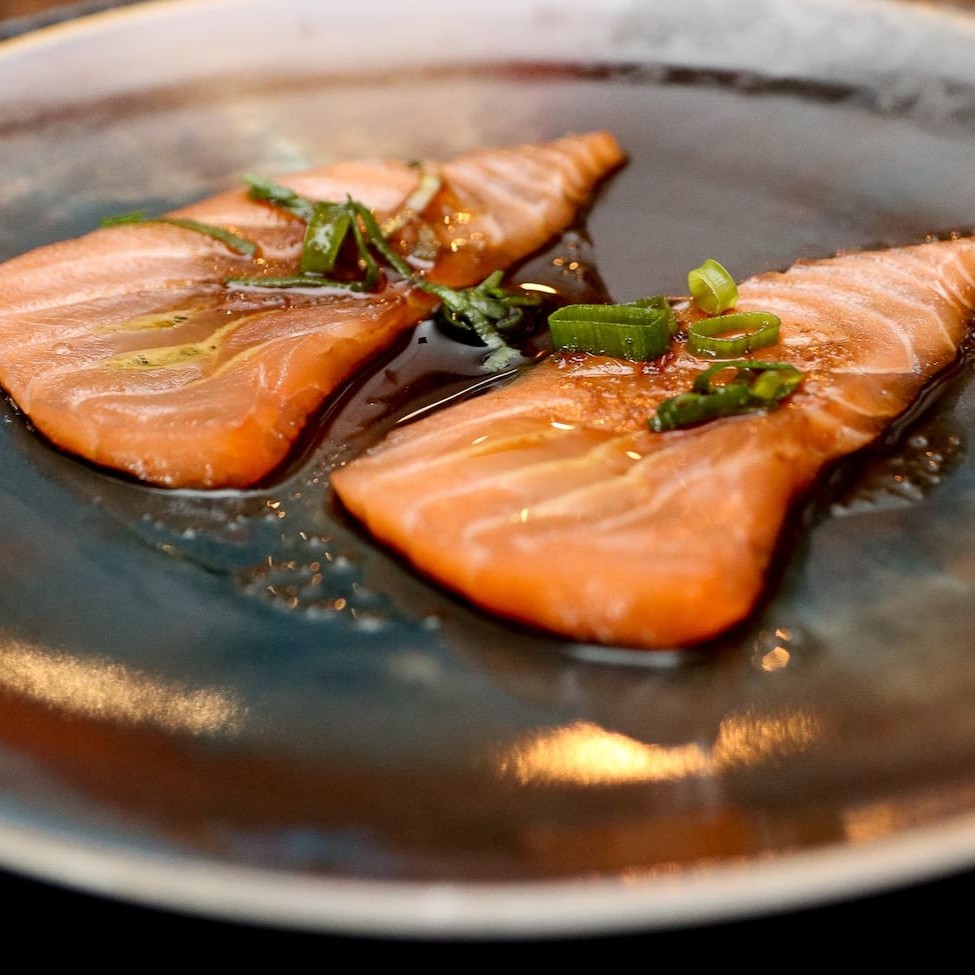 10 Fatias Finas De Salmão Cru, Molho Ponzu, Cebolinha, Finalizadas C/ Azeite Trufado.Para Alterações Ultilize A Aba De Observações. Muito Obrigado.