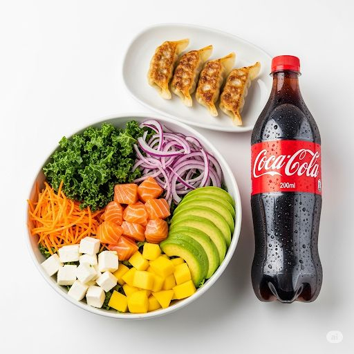 Monte 1 Poke + Porção a escolha (6 Hot Roll ou 4 Guiozas ou 4 Mini Harumakis Queijo) + Bebida!!!